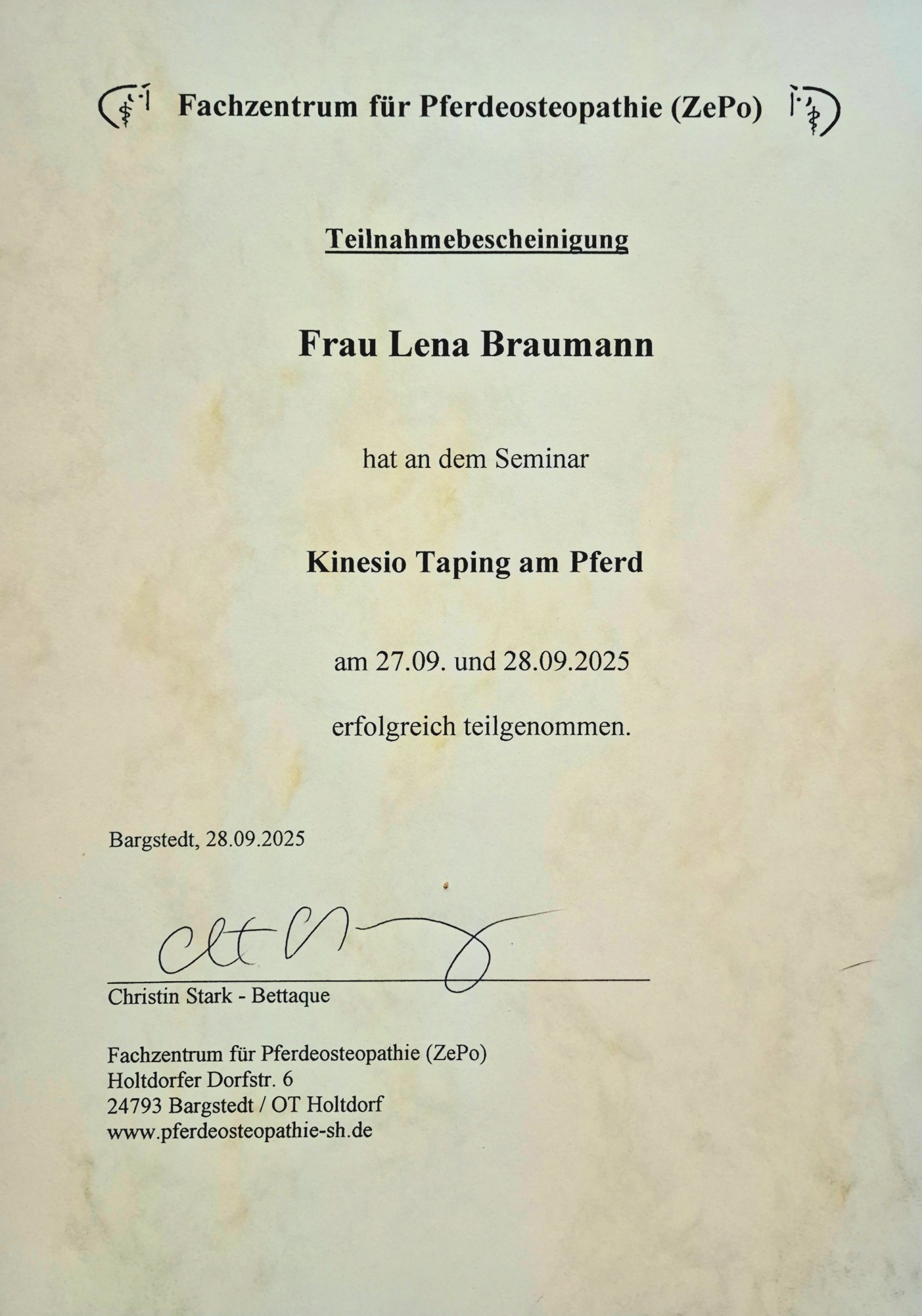 Auch nach meiner umfangreichen Ausbildung ist es mir wichtig mich stetig weiterzubilden, um Deinem Tier bestmöglich und immer individuell helfen zu können!